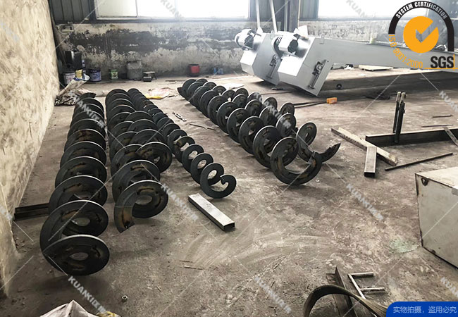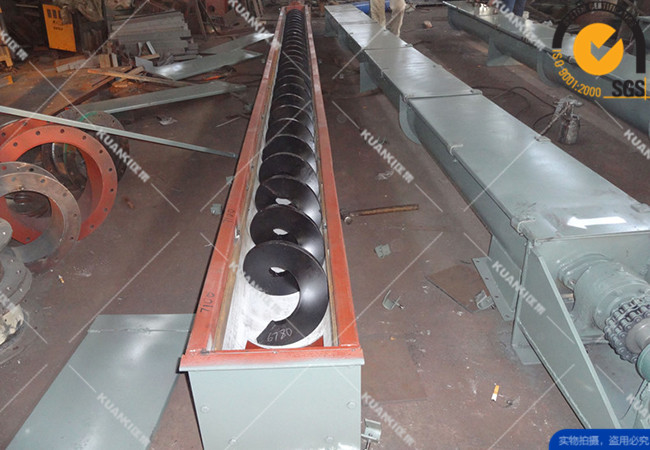 立式螺旋输送机与水平螺旋输送机在结构上大致相同,也是由驱动装置(电动机、减速器、联轴节)、螺旋、轴承、料槽、进料口、出料口等几部分组成,但其工作原理不一样。